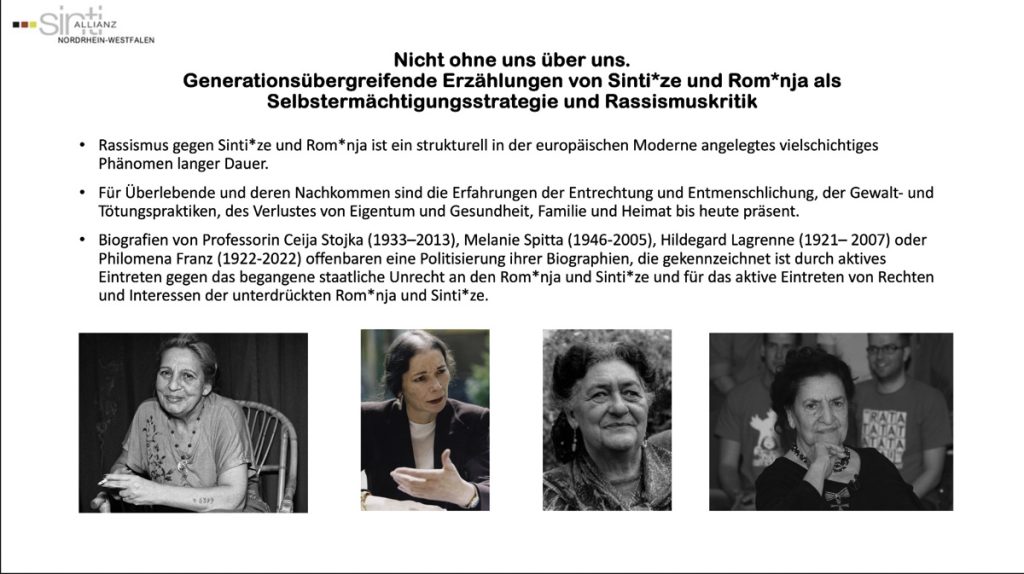 „Nicht ohne uns über uns. Generationsübergreifende Erzählungen von Sintize und Romnja als Selbstermächtigungsstrategie und Rassismuskritik“