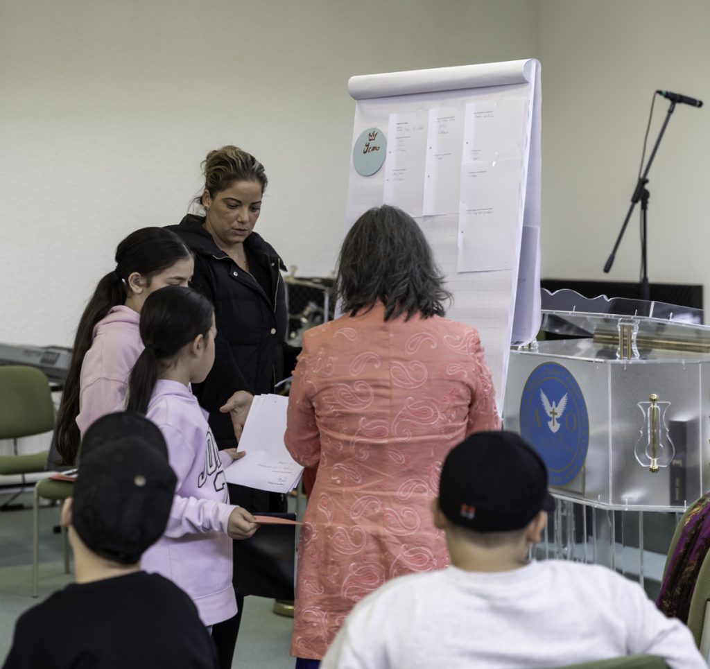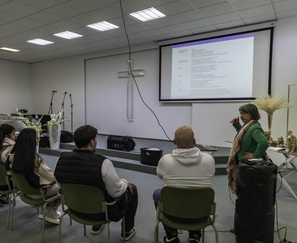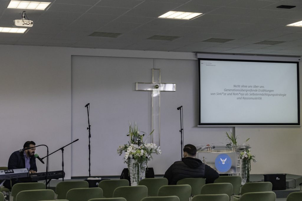 In einem geschützten Raum in der Gemeinde Kangeri in Köln erleben die Teilnehmenden Offenheit, Vertrauen und Anerkennung. Viele von ihnen sprechen hier zum ersten Mal offen über ihre Identität als Sinti oder Roma, über Rassismus-Erfahrungen und ihre Fragen zur eigenen Herkunft. Unterstützt werden sie dabei von den Projektleiter*innen Romina Kirsch und Jonny Weiss.