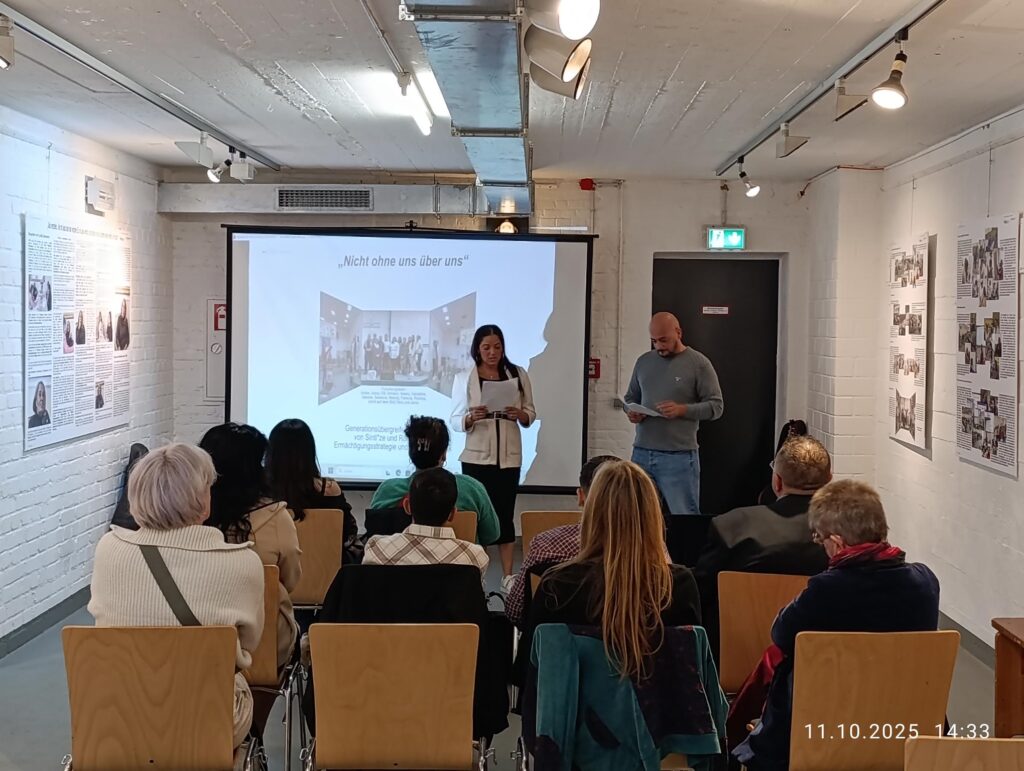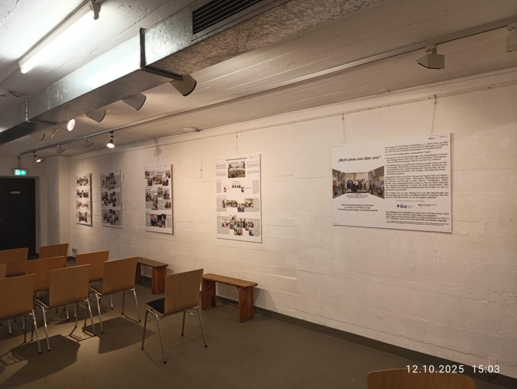Am Samstag, den 11. Oktober 2025, wurde in Kulturbunker Köln-Mülheim die außergewöhnliche Ausstellung „Nicht ohne uns über uns“ feierlich eröffnet. Schon beim Betreten des Raumes war zu spüren, wie viel Herzblut, Energie und Mut in diesem Projekt steckt. Zahlreiche Besucher*innen kamen, um diesen besonderen Moment mitzuerleben – und viele zeigten sich tief bewegt und dankbar, Teil dieser berührenden Veranstaltung sein zu dürfen.