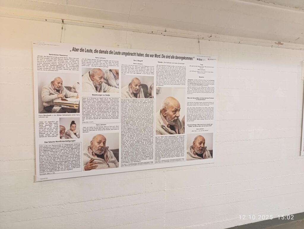 Die Ergebnisse der Interviews und die daraus entstandenen künstlerischen und dokumentarischen Arbeiten werden in einer Wanderausstellung präsentiert, die im Oktober 2025 in Bergheim feierlich eröffnet wird. Ziel ist es, nicht nur die Geschichten von Sinti und Roma sichtbar zu machen, sondern auch zu einer kritischen Auseinandersetzung mit Rassismus, Erinnerung und gesellschaftlicher Verantwortung anzuregen.
